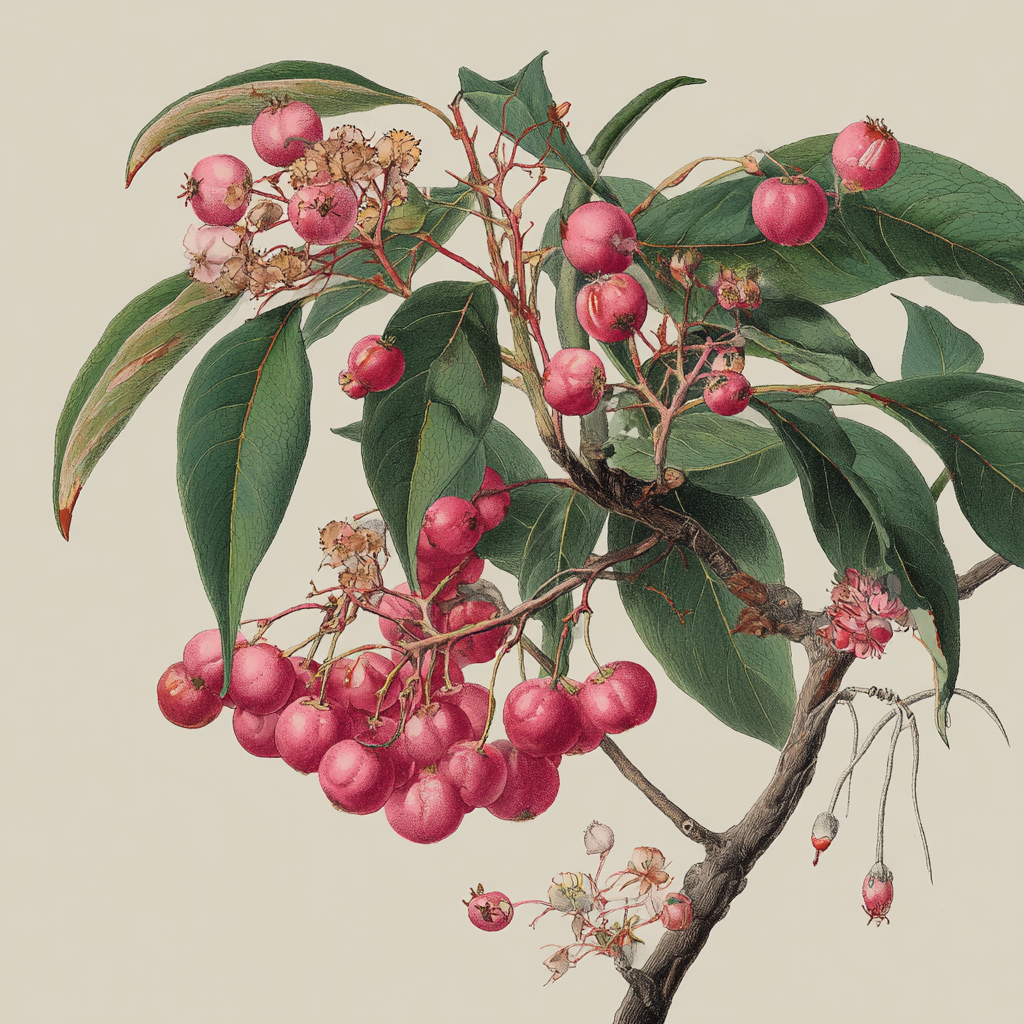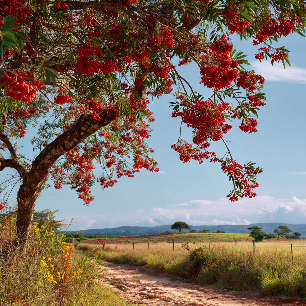 Na aroeira e sua pimenta-rosa, vemos a doçura que arde e o ardor que consola. Uma planta feminina, forte e silenciosa — que resiste, cicatriza e embeleza.