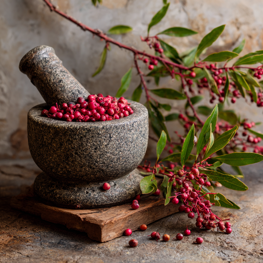 A pimenta-rosa é mais perfume que pimenta. Mais símbolo que susto. Mais floresta que fogão.